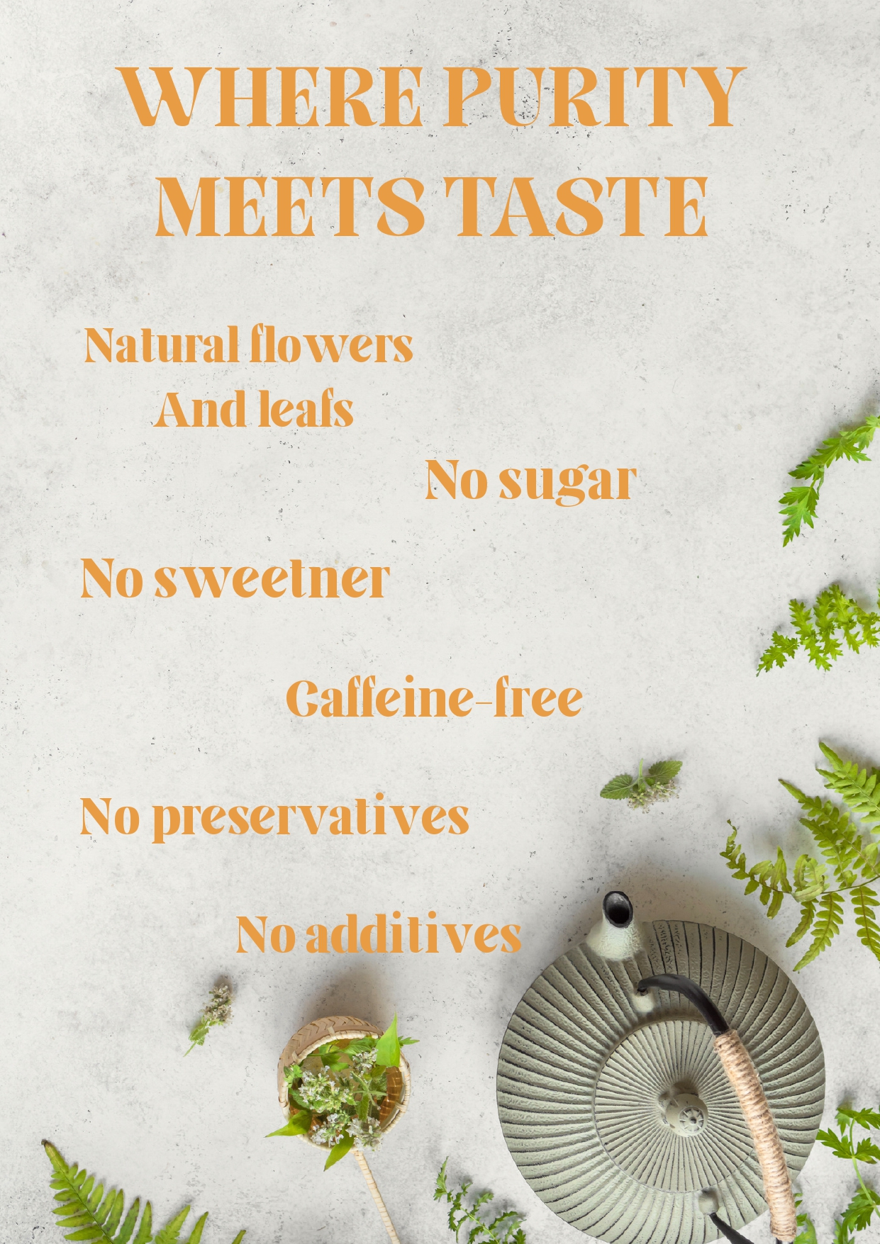Caffeine-free; no sugar, sweeteners, preservatives, or additives